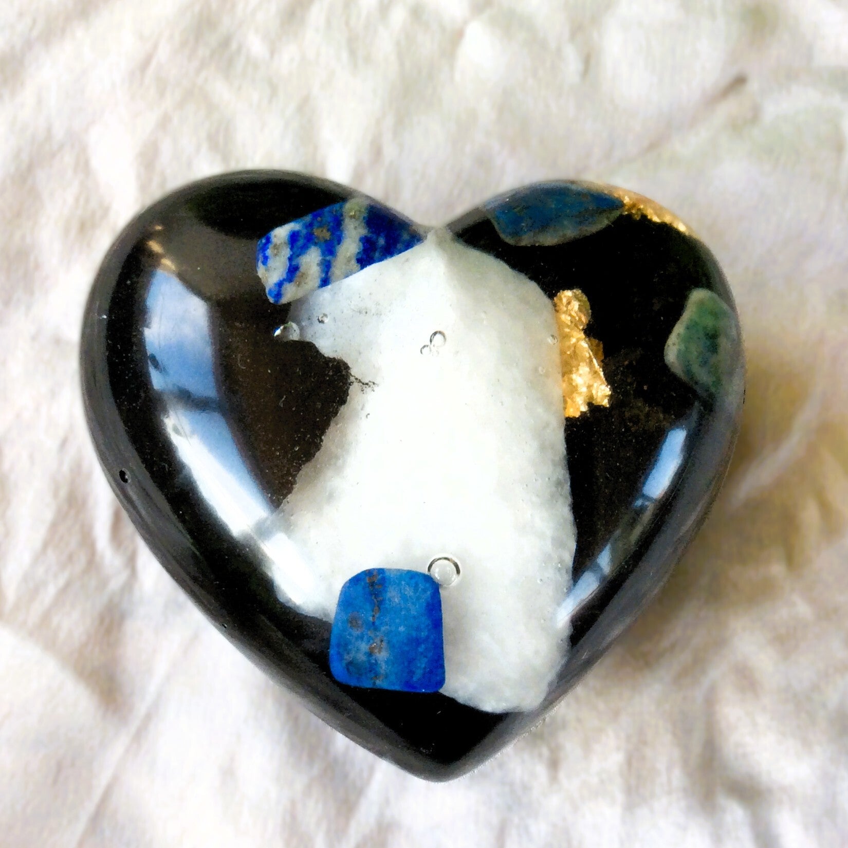Orgonite hart groot 'Lapis en bergkristal'