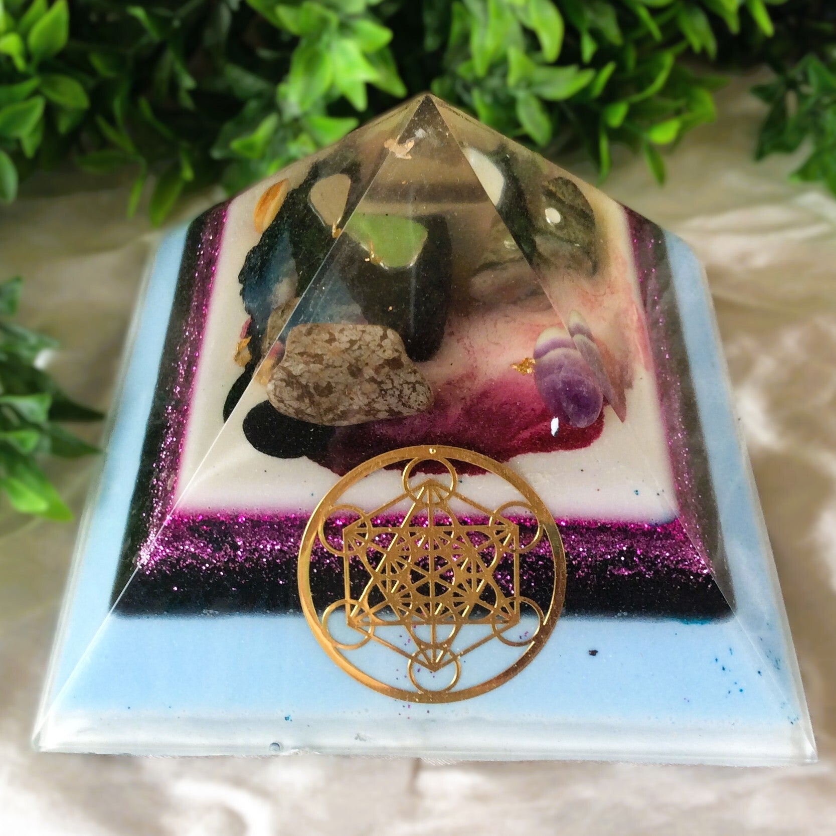 Orgonite piramide groot 'Vijf edelstenen'
